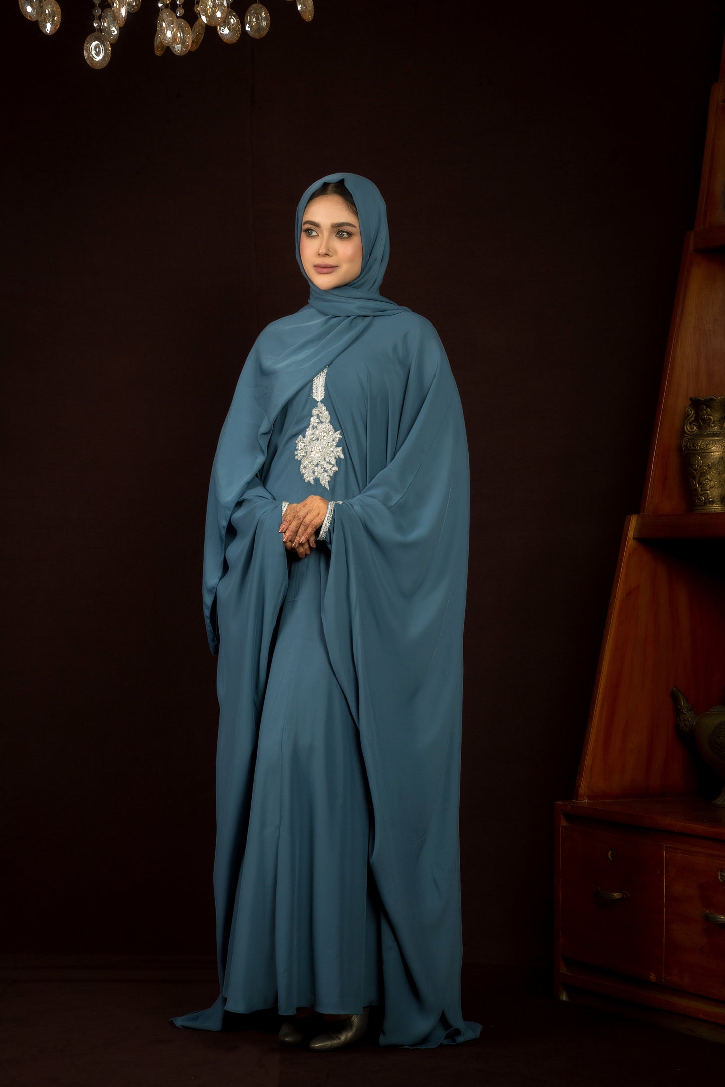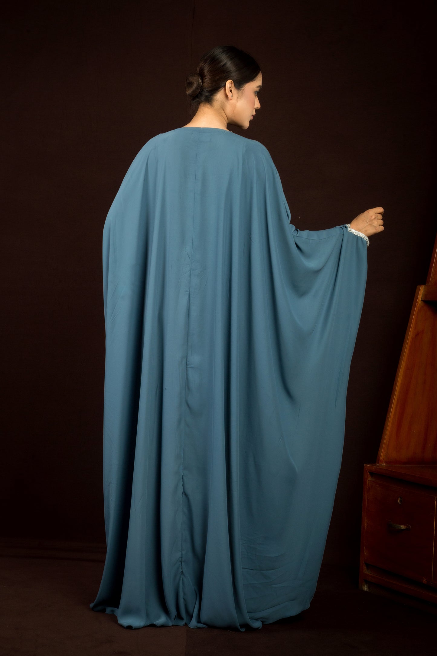 Channelling grace in every drape, the Aluna Embellished Kaftan is a refined piece made for evenings of elegance and moments that matter. Designed in a rich, muted blue tone with a flattering V-neckline, this kaftan features silver embroidery that cascades delicately down the front and cuffs — adding subtle shimmer without overpowering the silhouette.