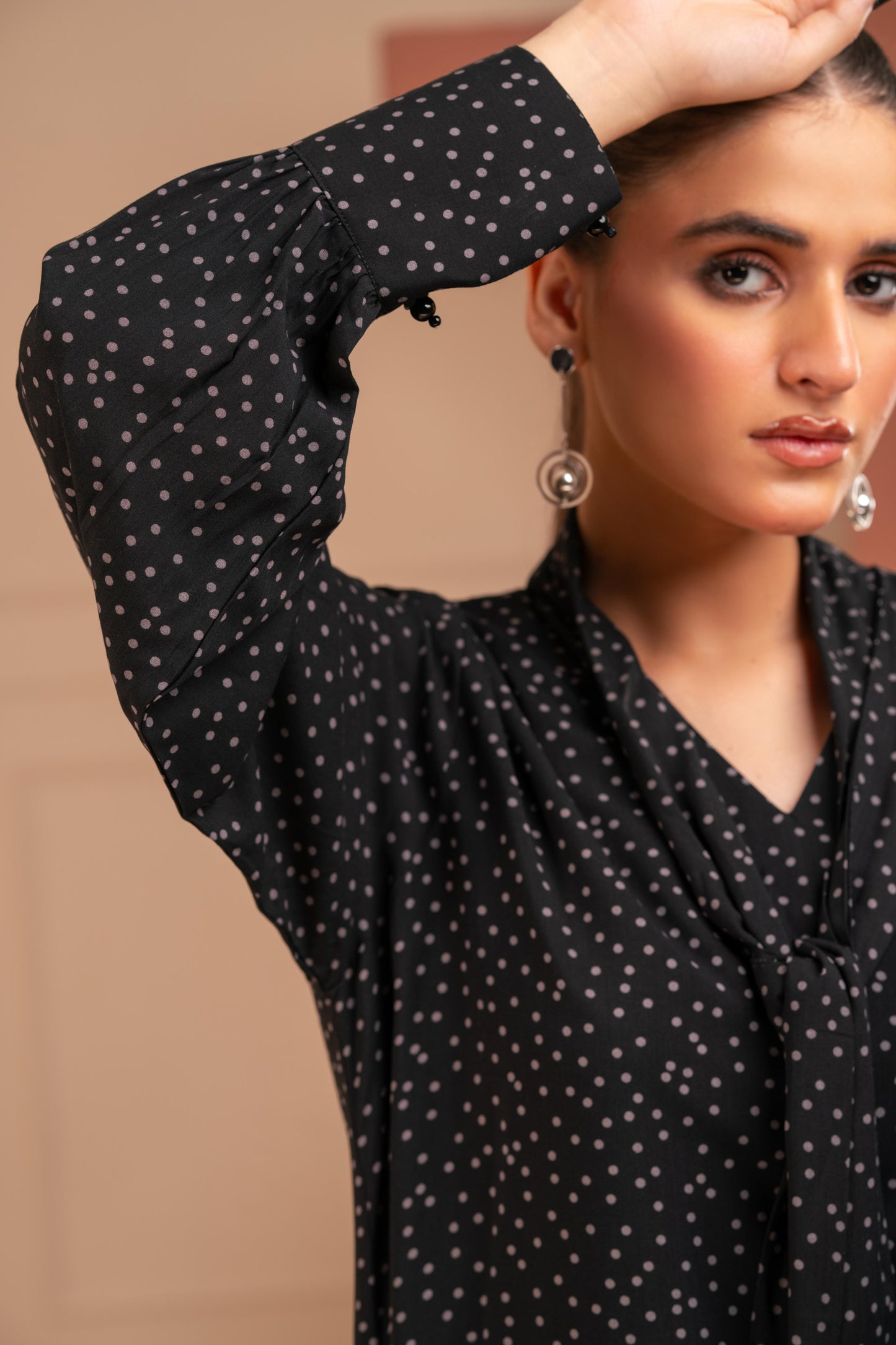 Effortless charm meets modern sophistication — the Calla Dress is designed for those who love timeless patterns with a chic twist. Featuring a subtle polkadot print on a flowy black base, its relaxed A-line silhouette and fixed back neck tie add a touch of graceful movement and versatility.