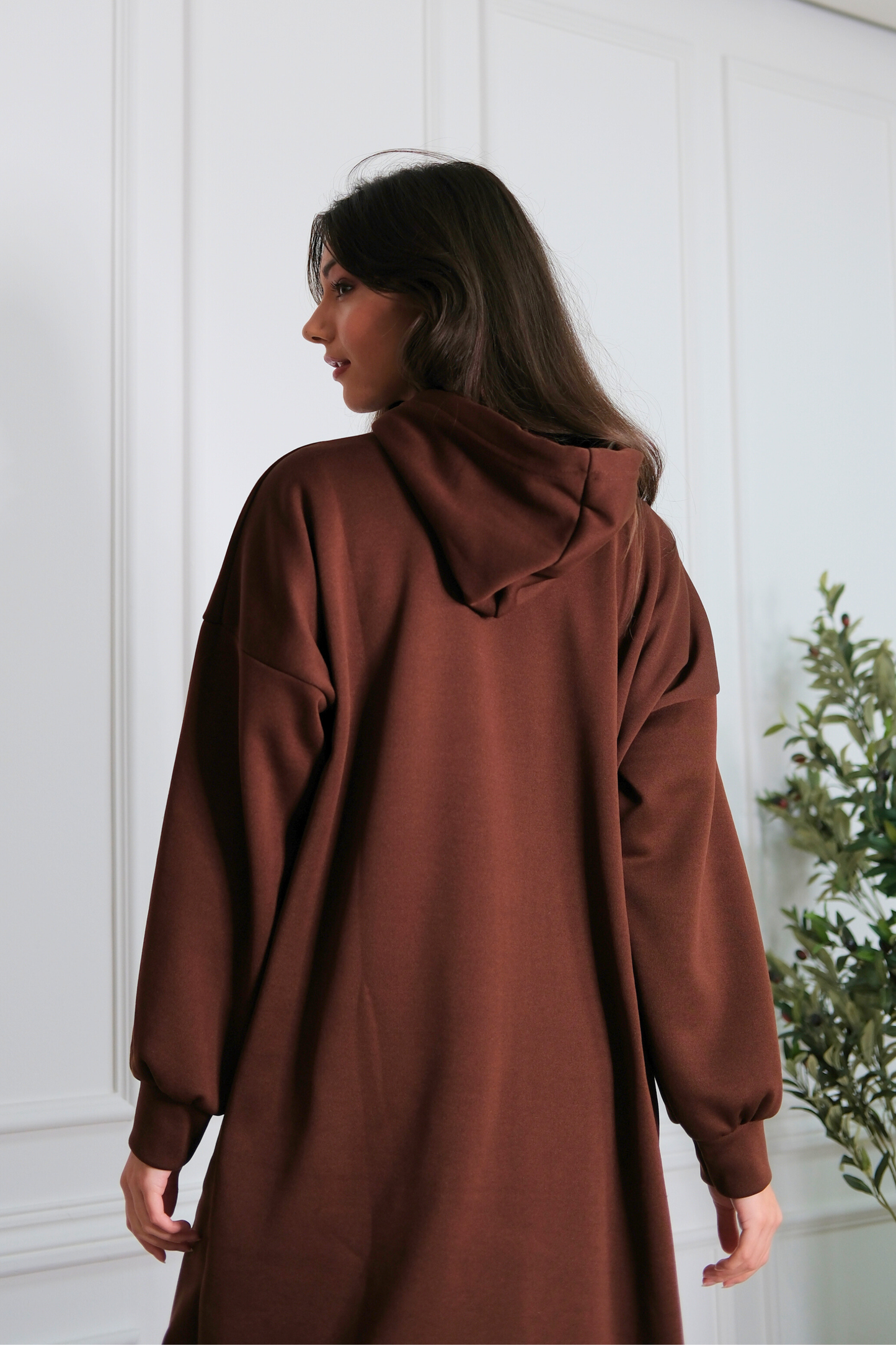 The Signature Hoodie Dress blends comfort and elegance in one effortlessly modest silhouette. Designed from a soft, mid-weight 95% polyester and 5% elastane fabric, it offers a smooth drape with just the right amount of stretch for movement and ease.