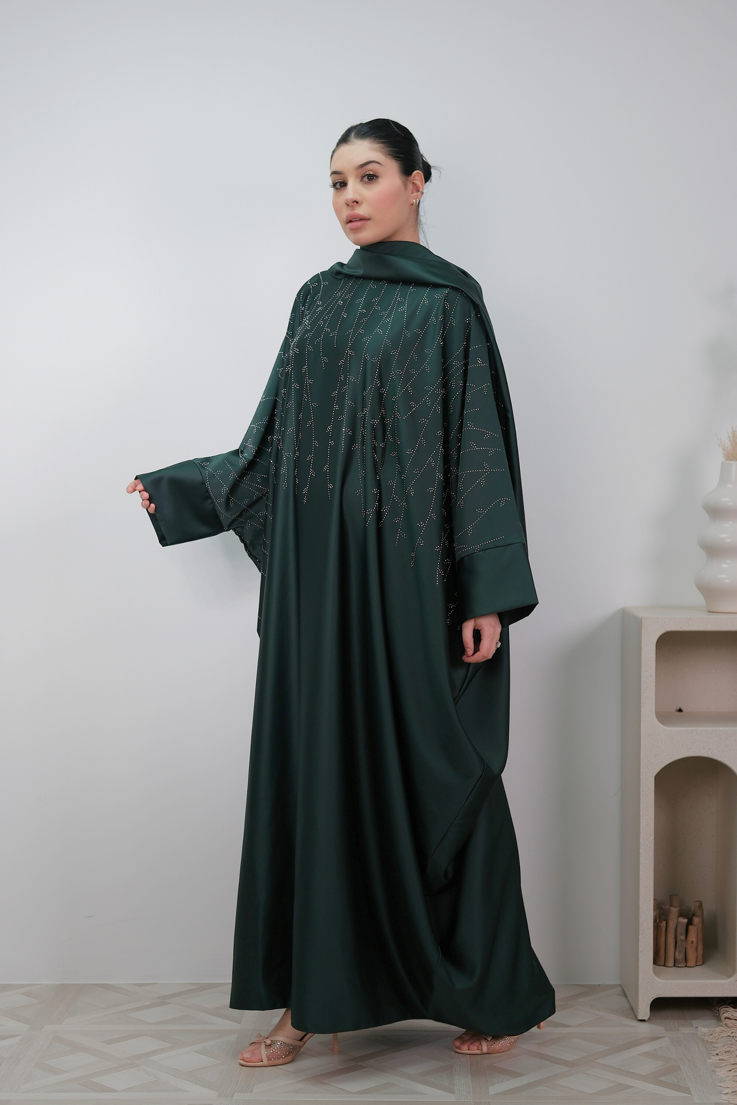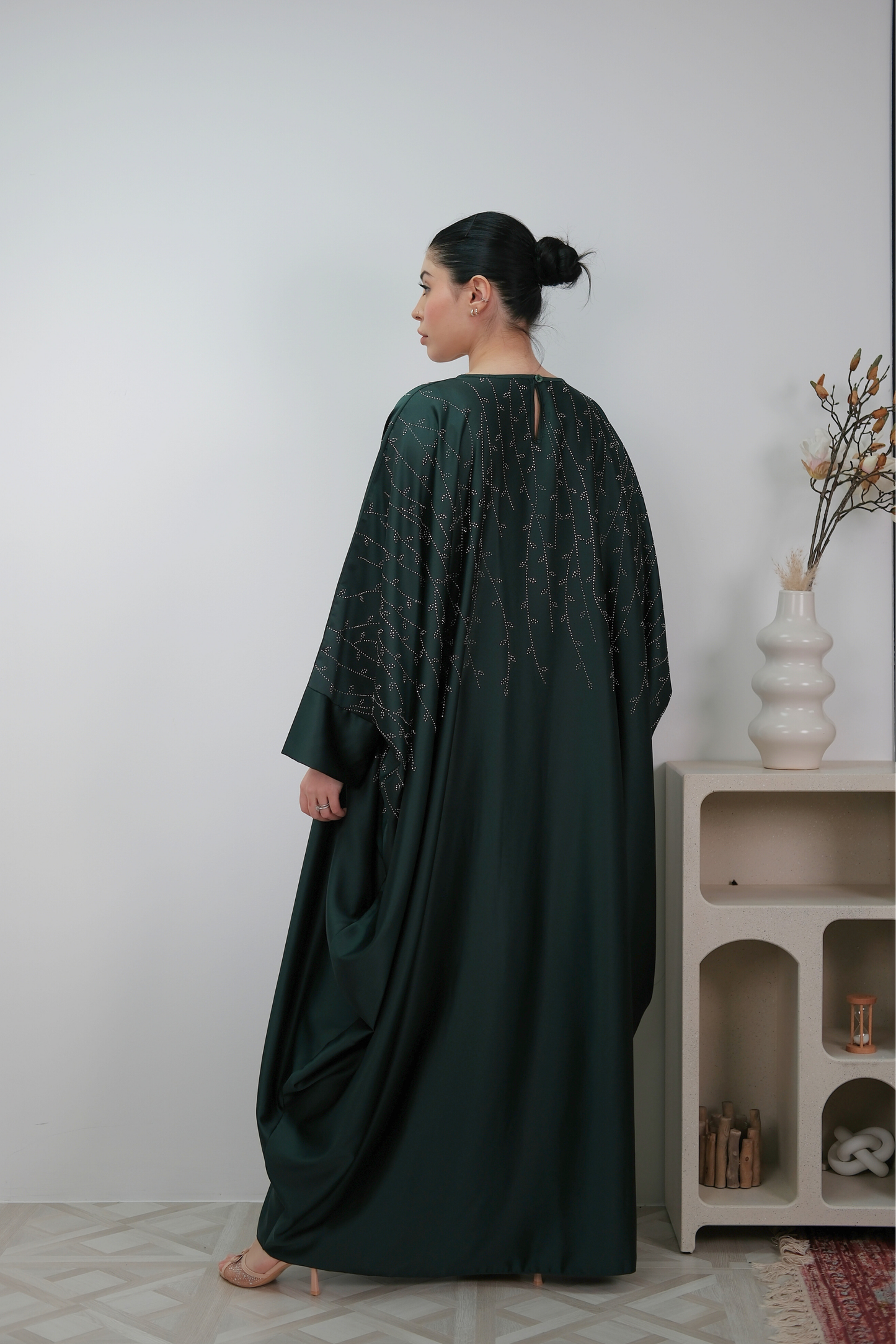 A full-length kaftan designed in a fluid silhouette with delicate linear shimmer detailing throughout. Finished with an adjustable inner waist tie, allowing you to subtly define the shape as desired- wear it loose for effortless flow or cinched for a more sculpted finish. Comes complete with a matching scarf for a seamless, elevated look.
