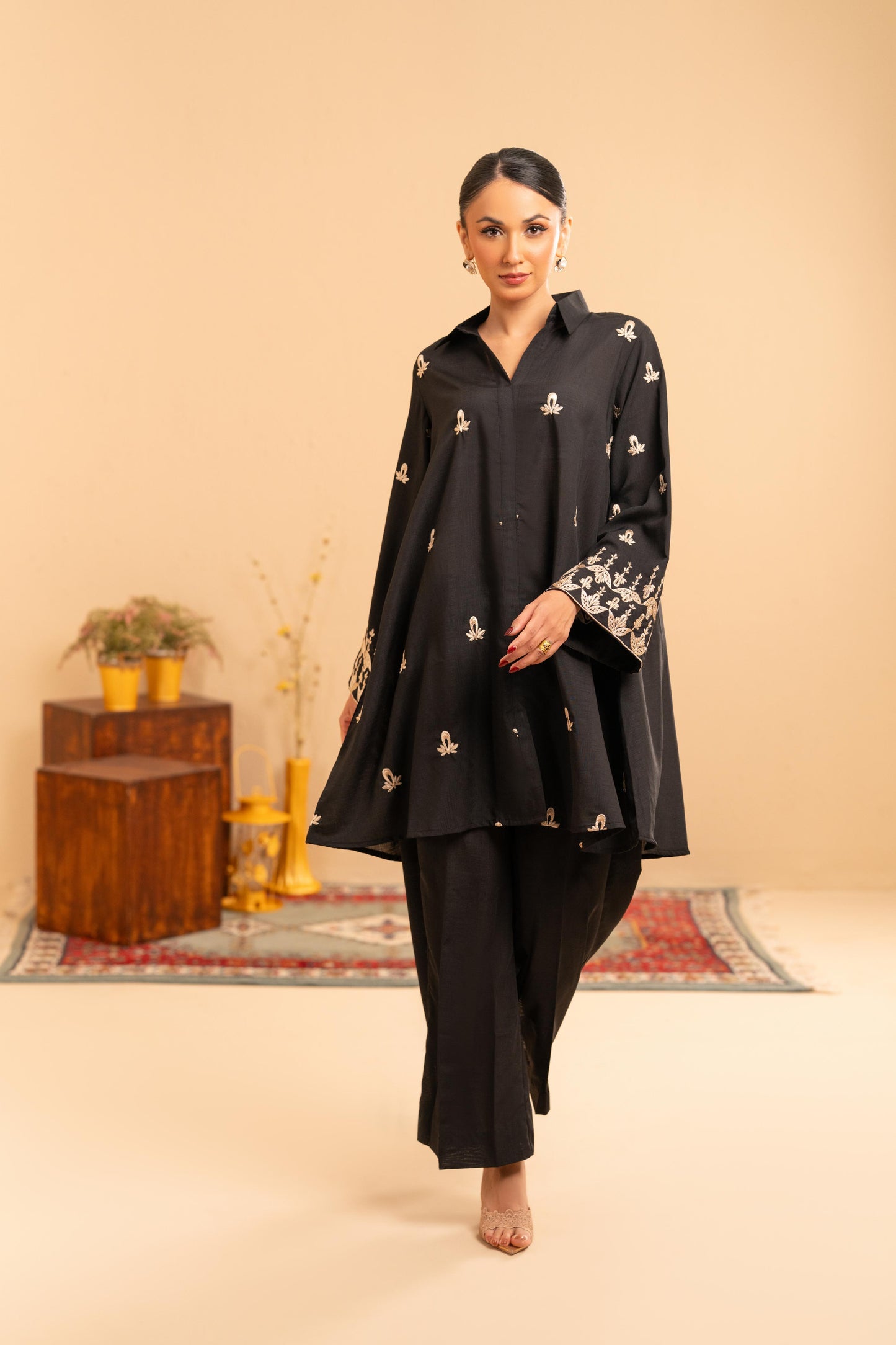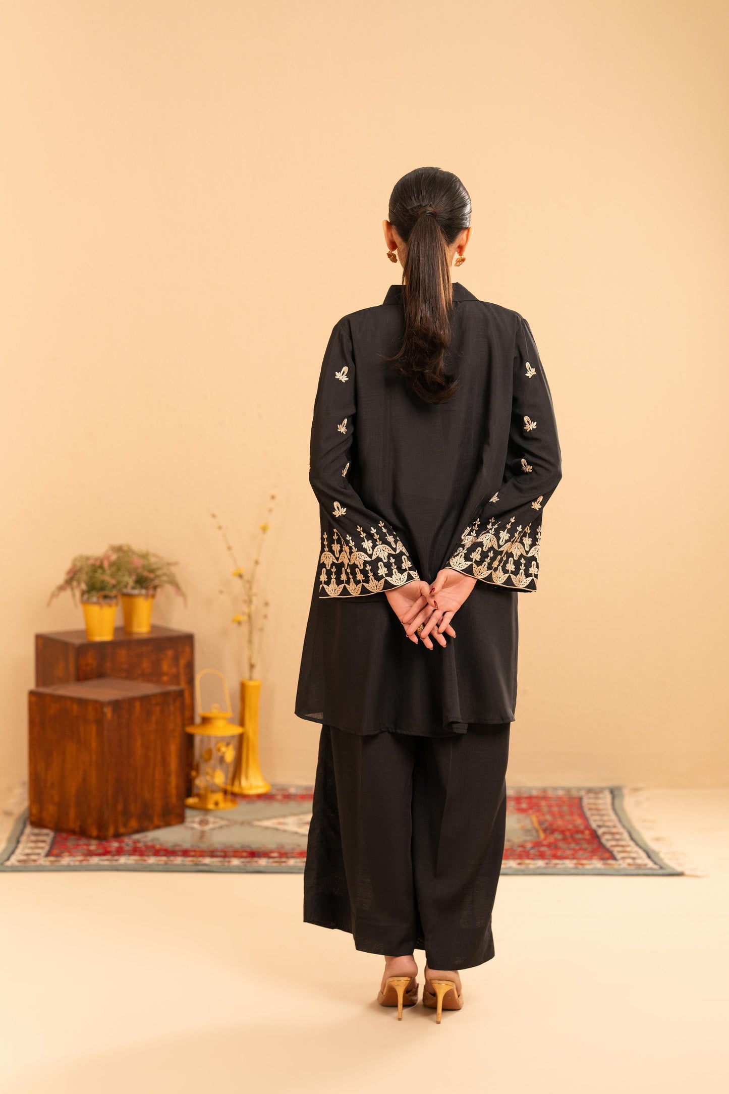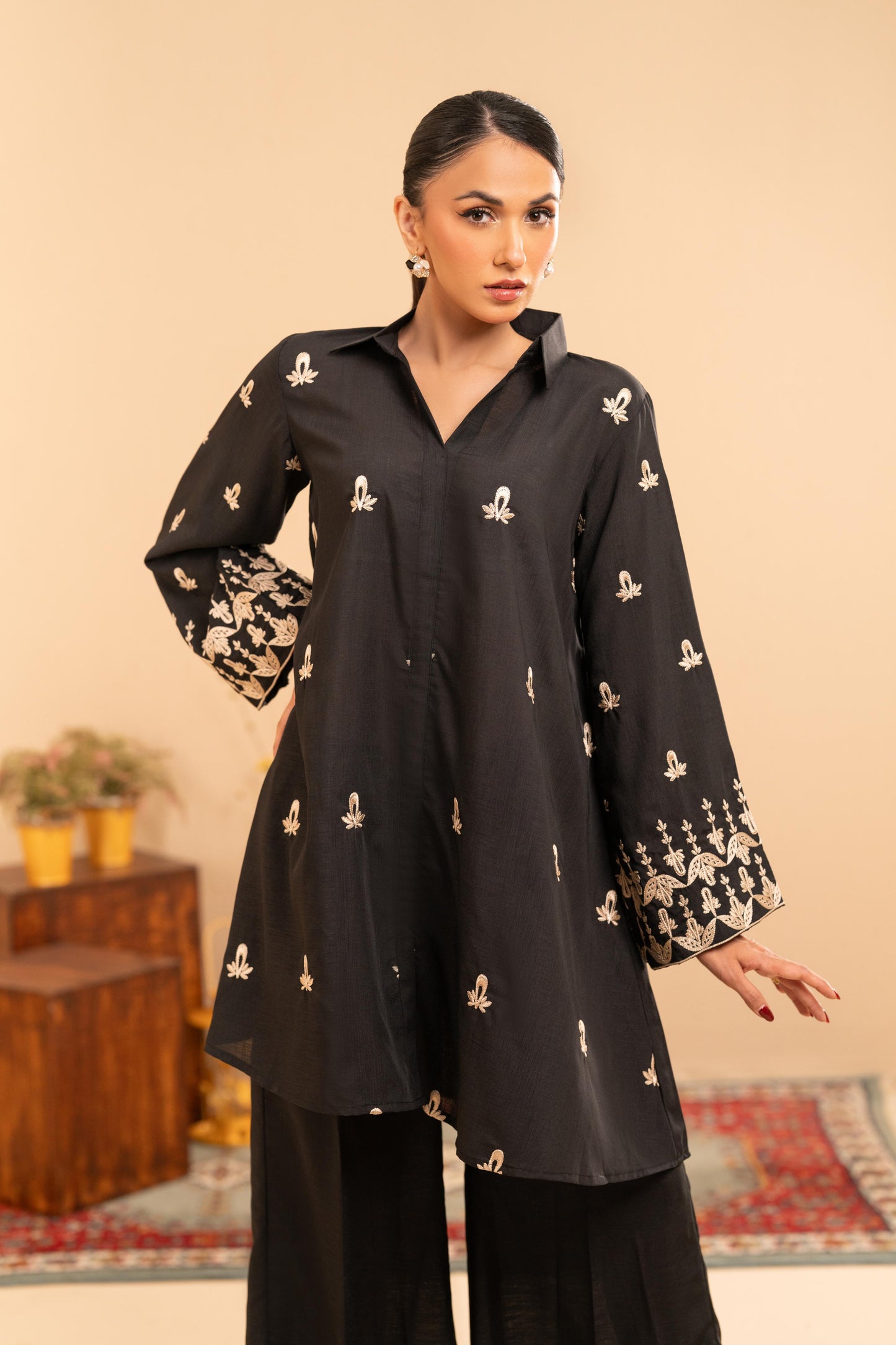 Designed with a relaxed longline top and matching wide-leg trousers, this co-ord offers fluid movement and versatility—perfect for daytime gatherings or styled up for evening wear. A timeless set made to be worn together or styled separately.