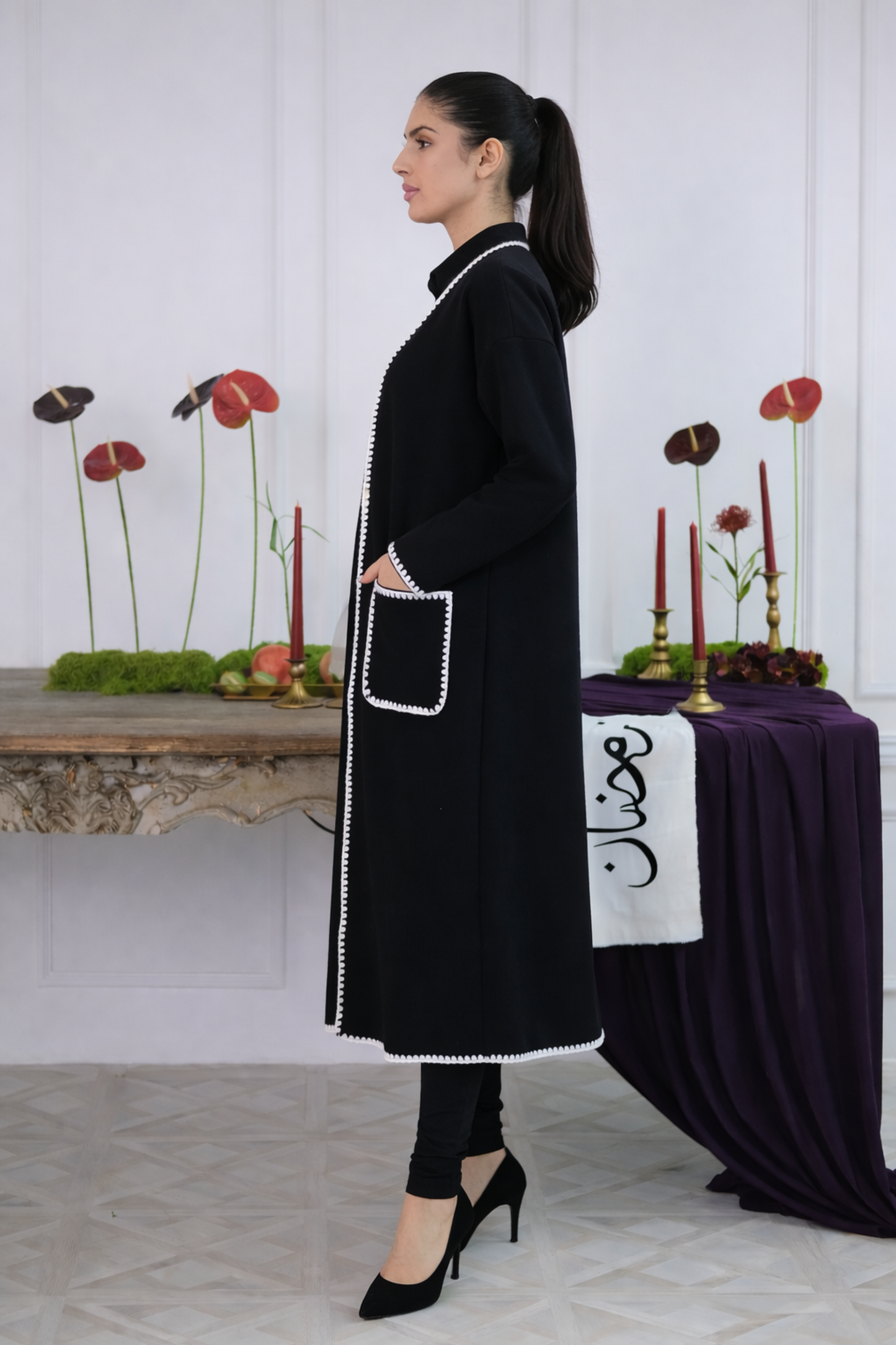 The Contour Edge Outer is a refined statement piece designed with clean lines and subtle contrast detailing. This structured outer features a minimalist silhouette accented with bold trim edging that frames the front, cuffs, and pockets with quiet precision. The relaxed yet polished fit allows effortless layering, making it an ideal choice for both everyday wear and elevated styling. A modern essential that balances simplicity with character, this outerwear piece is designed to transition seamlessly across seasons.